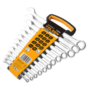 SET LLAVE COMBINADA 12P• Cr-V• Cromado, acabado mate• Embalaje: percha de plástico con funda de colorSitio web: www.tolsen.com.uy