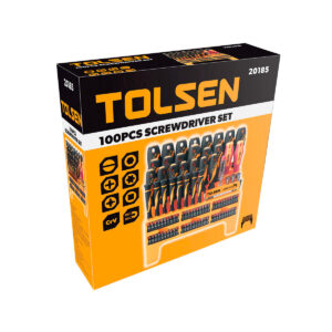 SET DESTORNILLADORES 100 P.• Contiene• Destornilladores de 20 piezasHoja Cr-VAgarre cómodo de dos componentesPunta magnética con acabado negroSL: 3,0x75mm, 4,0x100mm, 5,5x100mm, 6,5x100mm,6,5x150mm, 8,0x150mmPH: PH1x75mm, PH1x80mm, PH1x150mm, PH2x100mm,PH2x150mmPZ: PZ0x75mm, PZ1x75mm, PZ2x100mmTORX: T25x75mm, T25x100mm, T30x100mmCUADRADO: S0x75mm, S1x75mm, S2x100mm• 1 destornillador de trinquete, 72 dientes, agarrecómodo de dos componentes• 8 destornilladores de precisiónMaterial Cr-VCromadoAgarre cómodo de dos componentesNegro…