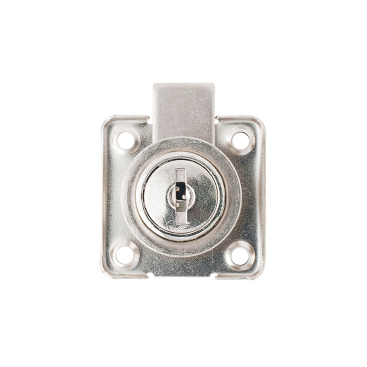 Cerradura para escritorios, gavetas, cajones y muebles en general. Cilindro de 7/8. Sujeción por 4 tornillos incluido. Dos llaves niqueladas.