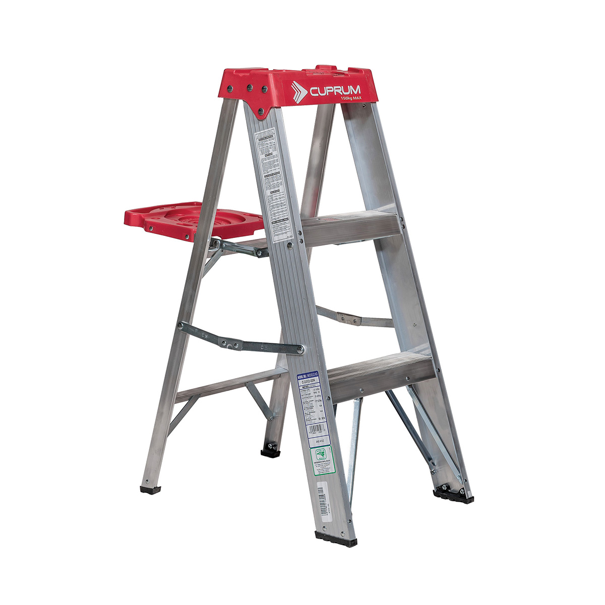 Modelo C-2312-03N Nº DE PIES 3 Nº DE PELDAÑOS 2 ALTURA TOTAL DE LA ESCALERA (m) 0.91mts ALTURA MÁX. PARA PARARSE (m) .28 mts ALCANCE MÁX. DE TRABAJO (m) 2.28 mts PESO APROX. (kg) 3.02kg VOLUMEN (m3) 0,06