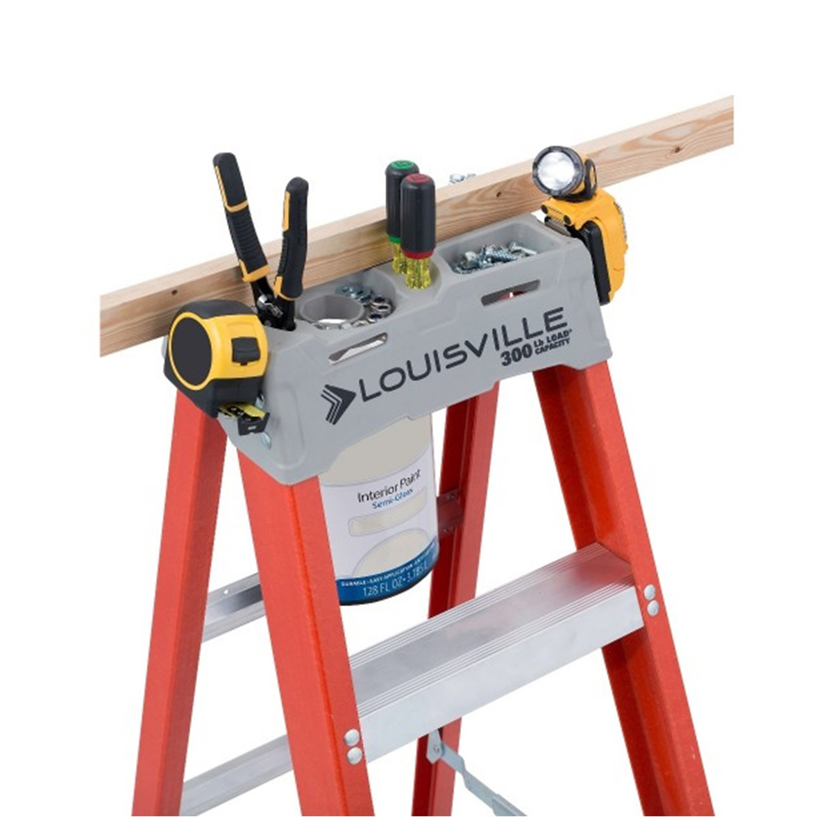 Equipado con bota para una base antideslizante. La parte superior moldeada estructural no conductora con ranuras para herramientas ayuda a mantener las herramientas a mano. El producto es de escalera FBG 1A de 10 pies. Diseño elegante y acabado suave. Diseño exclusivo de Louisville, la capacidad de carga